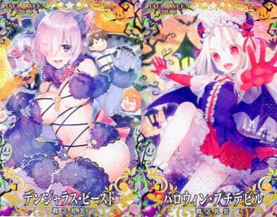 Fate/grand order アーケード稼働記念商品 大当たりは写真のカードでございます。 ハズレでもハロウィン特別枠カードが1枚以上必ず入っております 1パック2枚入り。多数購入した場合、同名カードが含まれている可能性がございます。ご了承ください。